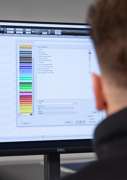 Diseñado para integrarse perfectamente con el proceso operativo, el sistema de escaneo de última generación permite que la máquina realice reconocimientos detallados de los patrones y formas presentes en los materiales a trabajar.